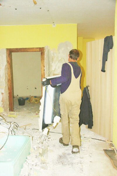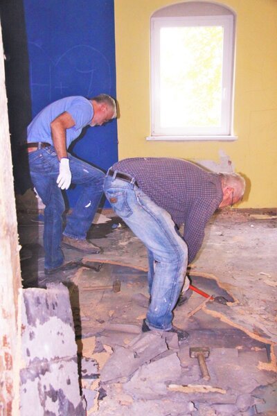 Am 08.10.2016 fand der dritte Arbeitseinsatz am Pfarrhaus statt. Es wurden alte Fußbodenplatten herausgebrochen, alte Heizungsrohre und Armarturen ausgebaut sowie umfangreiche Beräumungsarbeiten durchgeführt. Es ist immer wieder erstaunlich wie viele alte Gerätschaften seit Jahrzehnten in der Hoffnung auf Wiederverwendbarkeit gelagert wurden.
