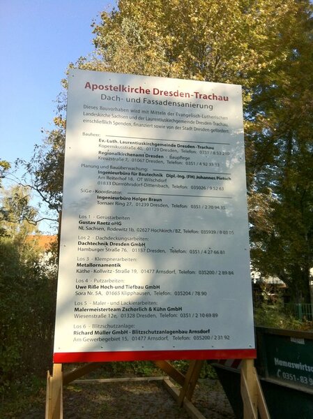 Die Bauarbeiten an der Apostelkirche gehen überwiegend planmäßig voran. Bis Ende Oktober soll das Dach vollständig eingedeckt werden. Gleichzeitig ist der Außenputz am Turm bereits an vielen Stellen ausgebessert worden.