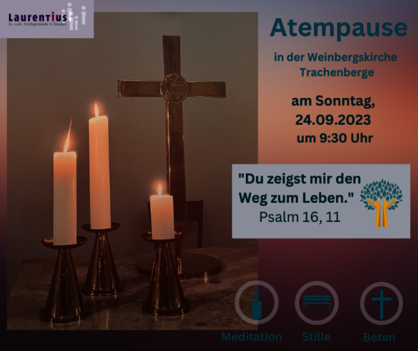 Der nächste Atempause-Gottesdienst in der Weinbergskirche Trachenberge findet dieses Mal an einem Sonntag, dem 24. September, um 9:30 Uhr statt.