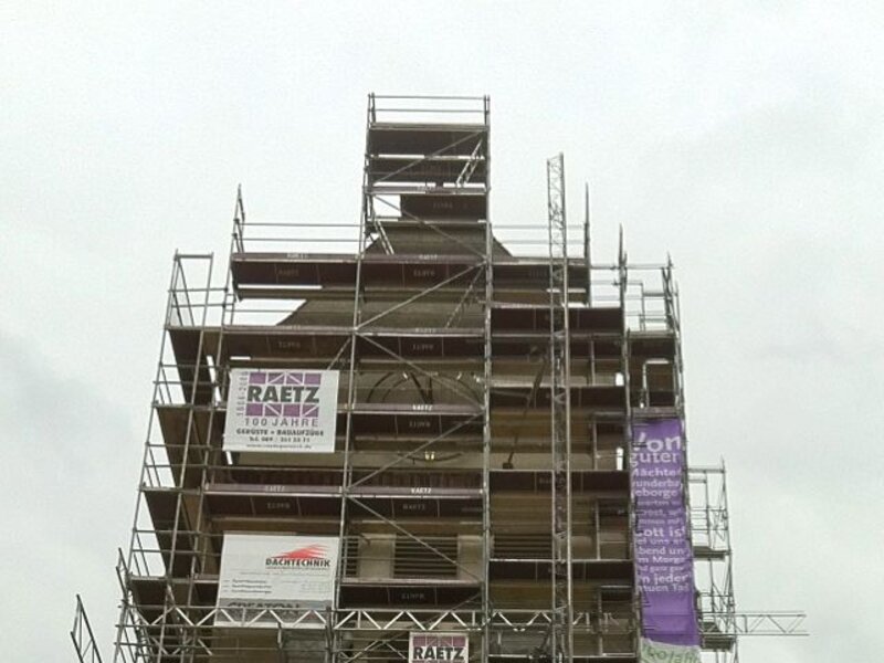 Am kommenden Donnerstag, dem 11. August, wird voraussichtlich das Turmgerüst an der Apostelkirche fertiggestellt und freigegeben. Damit kann dann eine weitere wichtige Etappe der Arbeiten in Angriff genommen werden.