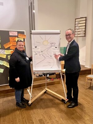 Wie bereits im Bericht von der Februar-KV-Sitzung angekündigt, trafen sich am 9. Februar um 17 Uhr unter Leitung der Vorsitzenden Regina Hadem und Florian Reißmann die Kirchenvorstände des Kirchspieles Dresden-Neustadt und unserer Kirchgemeinde, um sich sowohl näher kennenzulernen, als auch die Bereitschaft für eine gemeinsame Zukunft auszuloten. Das Zusammentreffen wurde sehr professionell und einfühlsam von Pfarrerin Sahra Zehme und Pfarrer Johannes Schreiter moderiert. Beide sind als Gemeindeberater der Landeskirche tätig.