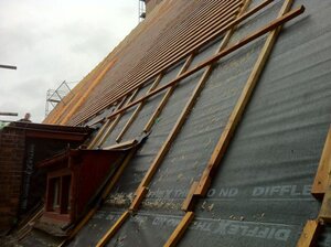 Der bisherige Bauablauf der Dachsanierung hat glücklicherweise keine größeren Überraschungen gebracht. Das Gerüst am Turm hat fast die endgültige Höhe erreicht, und trotz der zuletzt ungünstigen Witterung sind die Dacharbeiten am Kirchenschiff in vollem Gange.