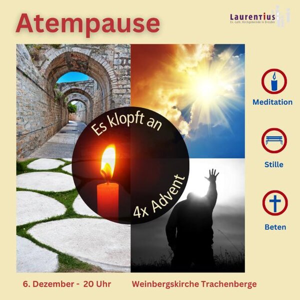 „Es klopft an“ – 4x Advent ist das Thema der Atempause in der Adventszeit.