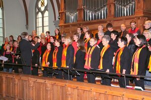 Der Gottesdienst wurde mitgestaltet von den Kindern und Kindergärtnerinnen der Kindertagesstätte „Himmelblau“. Musikalisch ausgestaltet wurde er von unserem Gospelchor „Laurentsingers“ gemeinsam mit dem Gospelchor aus Wolfsburg/OT Fallersleben. Die Gäste waren das ganze Wochenende in Dresden. Die beiden Chöre haben am Freitag gemeinsam geprobt und am Sonnabend einen Flashmob im Hauptbahnhof Dresden veranstaltet.