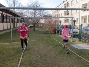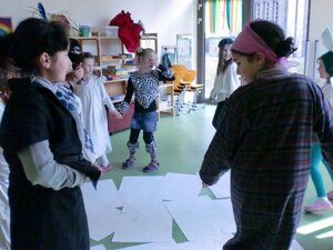 Zunächst bildeten wir eine lange Schlange und machten eine Polonaise durch das gesamte Kinderhaus. Dazu sangen wir unser beliebtes Lied „Die Affen rasen durch den Wald“. Anschließend gab es eine Stunde Zeit für die verschiedenen Stationen: „Dschungelbar“, „Inseltanz“ und „Dschungel-Wettspiele“.