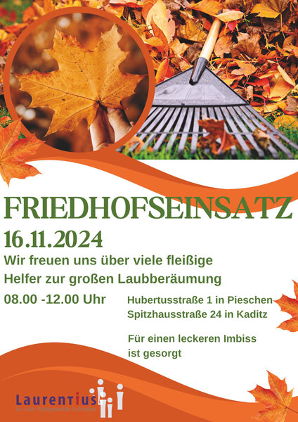 Wie jedes Jahr ist sind auch in diesem Jahr vor dem Ewigkeitssonntag die Friedhöfe vom Laub zu bereinigen.
