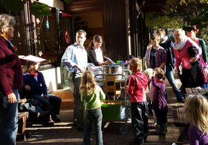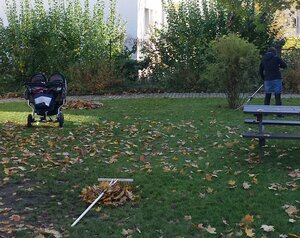 Viele Familien unseres Kinderhauses hatten sich im Kalender den Termin für den Garteneinsatz am 8. November 2014 vorgemerkt und machten sich an diesem Samstagvormittag gemeinsam auf den Weg, um bei der alljährlich auf dem Kinderhausgelände stattfindenden Herbstputzaktion dabei zu sein. Bei wunderbarem Herbstwetter waren 29 Erwachsene und viele Kinder fleißig beim Laubrechen, Fensterputzen, Graben usw. , so dass bis zum Mittag alle wesentlichen Aufgaben erledigt waren. Wie immer gab es dabei auch viel Spaß und danach für alle eine kleine Stärkung.