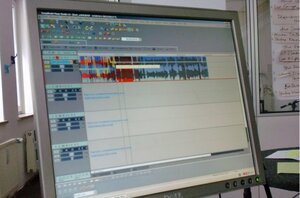 Deshalb beschlossen wir, die angefangene Arbeit im Hort weiterzuführen. Und so entstand daraus ein richtiges Hörspielprojekt, da wir noch weitere Geräusche aufnehmen und die Endfassung geschnitten werden musste. Dafür trafen wir uns an verschiedenen Tagen meist spontan in einem unserer Räume. Besonders die noch fehlenden Geräusche zu produzieren, bereitete uns großen Spaß. Wir probierten die verschiedensten Stellen und Hilfsmittel zur Geräuschproduktion aus, so lange, bis wir den jeweils für die Stelle der Geschichte unserer Meinung nach perfekt passenden Klang erreicht hatten. Dabei beteiligten sich auch Kinder, die an dem Tag in den Ferien nicht dabei sein konnten.