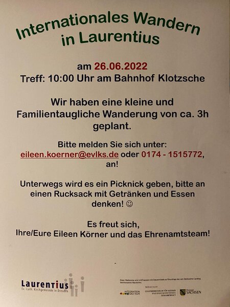Wir haben eine kleine und familientaugliche Wanderung geplant. Unterwegs soll es ein Picknick geben. Bitte denkt dazu an einen Rucksack mit Getränken und Essen.
