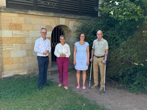 Sachsens Kultur – und Tourismusministerium fördert die Neugestaltung des Außengeländes der Weinbergskirche in Dresden Trachenberge mit 435.000 EUR aus PMO-Mitteln. Das Gelände soll vielfältig für Kultur, Begegnung und Aktivität genutzt und weiterentwickelt werden. Die Gesamtkosten belaufen sich auf 450.000 EUR. Kultur- und Tourismusministerin Barbara Klepsch waram 27. August 2024 vor Ort an der Weinbergskirche/ Kulturkirche Dresden und hat sich zum Stand der Planung und zu den Einzelheiten erkundigt. Von Seiten der Laurentiuskirchgemeinde nahmen Pfarrerin Annegret Lattke sowie Dr. Steffen Laub und Dr. Florian Reißmann vom Kirchenvorstand teil und erläuterten Einzelheiten zum Vorhaben.
