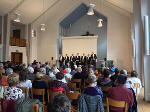 Laurentius Harmonists haben eingeladen - und zahlreiche Zuhörerinnen und Zuhörer haben es sich nicht nehmen lassen, bekannte Melodien der 20er und 30er Jahr zu erleben. Stilsicher und lebendig vorgetragen sowie hervorragend am Klavier von Henrike Enger-Bodinus begleitet, begeisterten die Laurentius Harmonists das Publikum in der Weinbergskirche