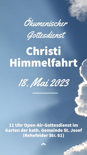 Wir feiern dieses Jahr am Donnerstag, den 18.05. gemeinsam mit der katholischen Pfarrei St.-Martin im Garten der St.-Josef-Kirche (Rehefelder Straße 61).