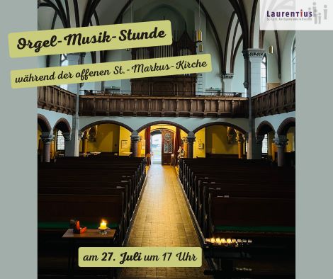 "Herzliche Einladung zur 39. kurzweilig-meditativen Orgelmusik zur Stunde der offenen Kirche St. Markus in Pieschen am Donnerstag, den 27.07.23, um 17 Uhr. Herr Westenhöfer spielt ein Programm mit sommerlichen Liedern für Groß und Klein, uns zu beschwingen mit Freude und innerer Weite - trotz verbrannter Erde, Flucht und Vertreibung weltweit - im gefühlten Spannungsfeld zwischen Trauermarsch und lebensbejahendem Musizierwillen, der von Zuversicht und Trost künden möchte." (D. Westenhöfer)