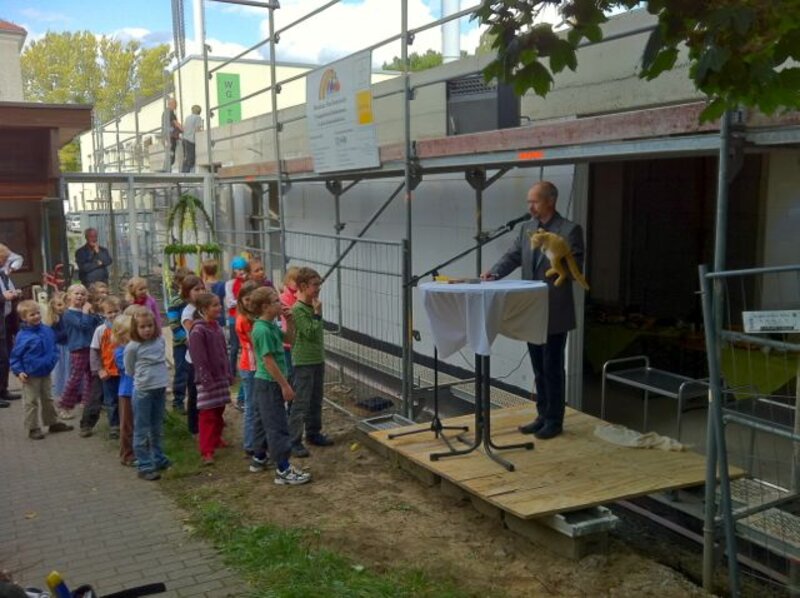 Am Nachmittag des 22. Septembers hatten die Kinder des Integrativen Kinderhauses an der Apostelkirche ca. 50 Gäste zum Richtfest des neuen Hortbereiches eingeladen.