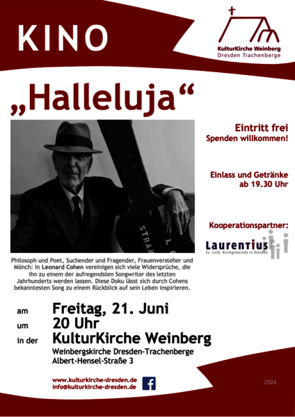 Eine Veranstaltung der Ev.-Luth. Laurentiuskirchgemeinde Dresden-Trachau. Organistation und Management: KulturKirche Weinberg Dresden-Trachenberge e.V.