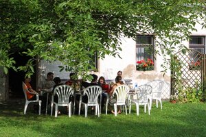 Neben der inhaltlichen Arbeit blieb natürlich ausreichend Zeit für Gespräche, ausgedehnte gemeinsame Mahlzeiten, Kreativangebote, Märchenstunden, einen Spaziergang zum nahe gelegenen Steinbruch mit anschließendem Besuch im Freibad und für ein Lagerfeuer.