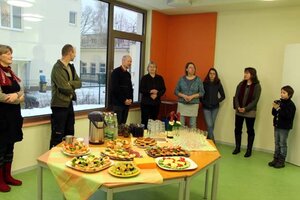 Am 13. Februar trafen sich früh um 8 Uhr Mitarbeiter vom Planungsbüro Otto+Müller, Mitglieder des Kindergartenausschusses und des Hortarbeitskreises zur feierlichen Übergabe des Hortneubaus. Nun ist das Kinderhaus offiziell Hausherr über das schöne Gebäude. Mit einem Sektempfang dankte Pfarrer Schlage den Beteiligten für die Arbeit beim Planen, Bauen und Überwachen.