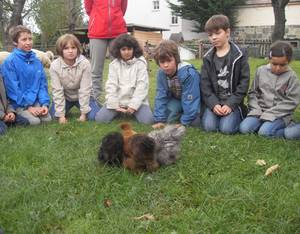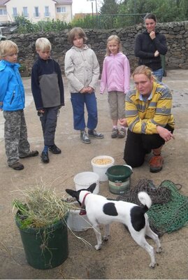...warfen wir natürlich nicht. Vielmehr kredenzten wir Hortis den zwei Minischweinen auf dem „Hofgut Graue Presse“ einen wenig ansehnlichen Getreideschrotbrei, der Einige von uns eher an Schlamm erinnerte. Die Hofbetreiberinnen Franzi und Juliane erklärten uns geduldig, welches Futter für welches Tier bestimmt ist und ließen uns dann fleißig bei der Fütterung der vielen hungrigen Mäuler helfen.
